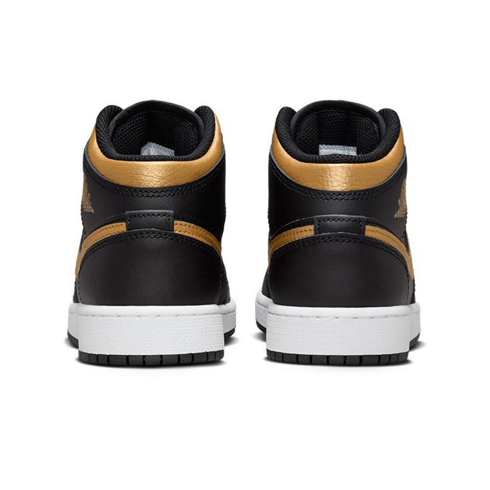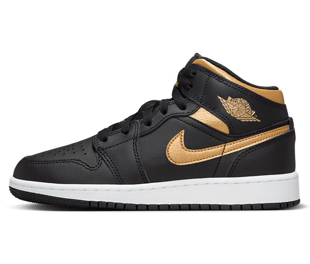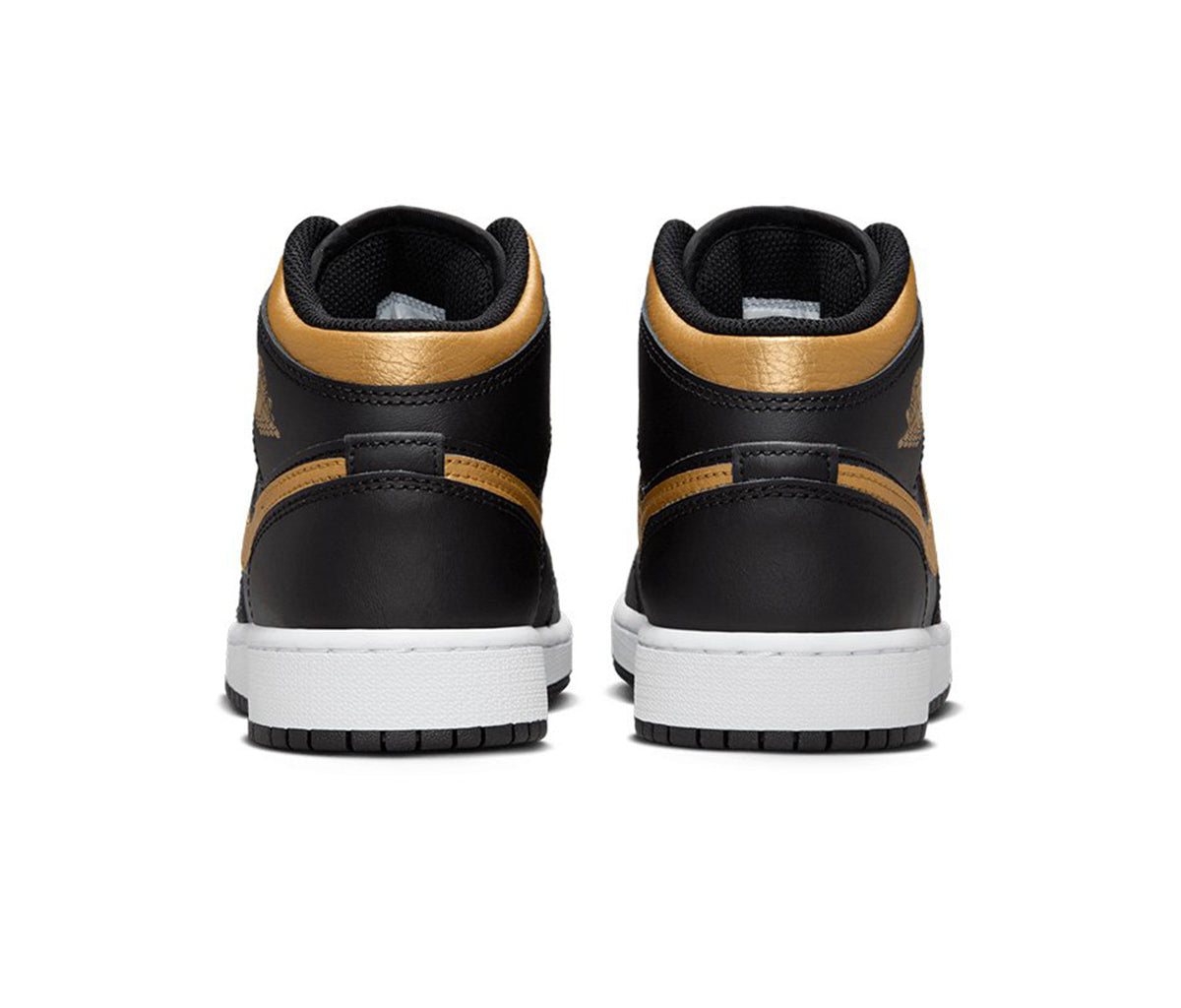 Air Jordan 1 Mid Black Metallic Gold Swoosh (GS)