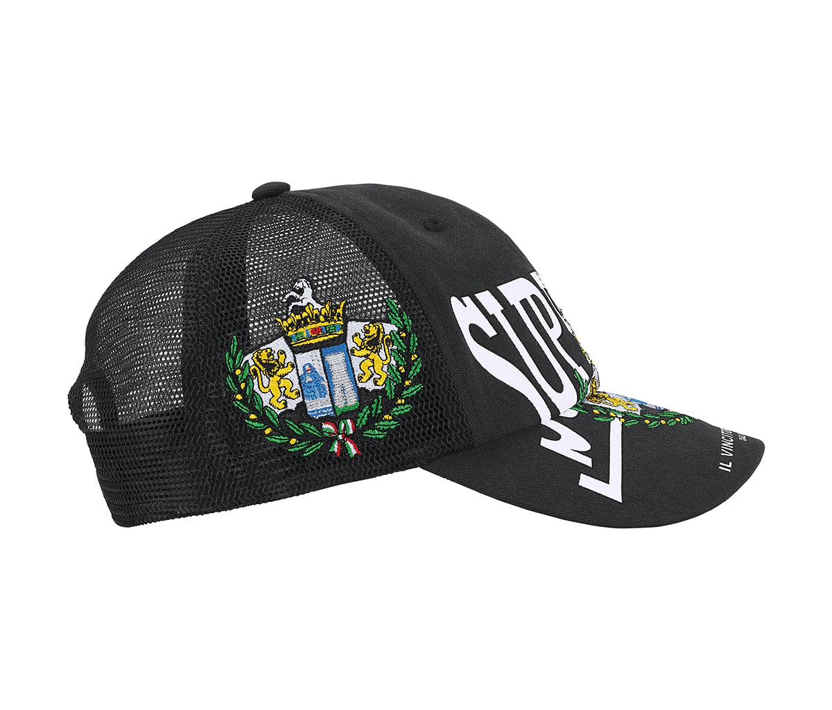 Černá čepice Supreme Crest Mesh Back 6-Panel Black je 6-panelová kšiltovka vyrobená z kvalitního bavlněného chino twillu s prodyšnou síťkou na zadní části a nastavitelným zapínáním. Na přední straně je výrazná vyšitá grafika inspirovaná erbem.
