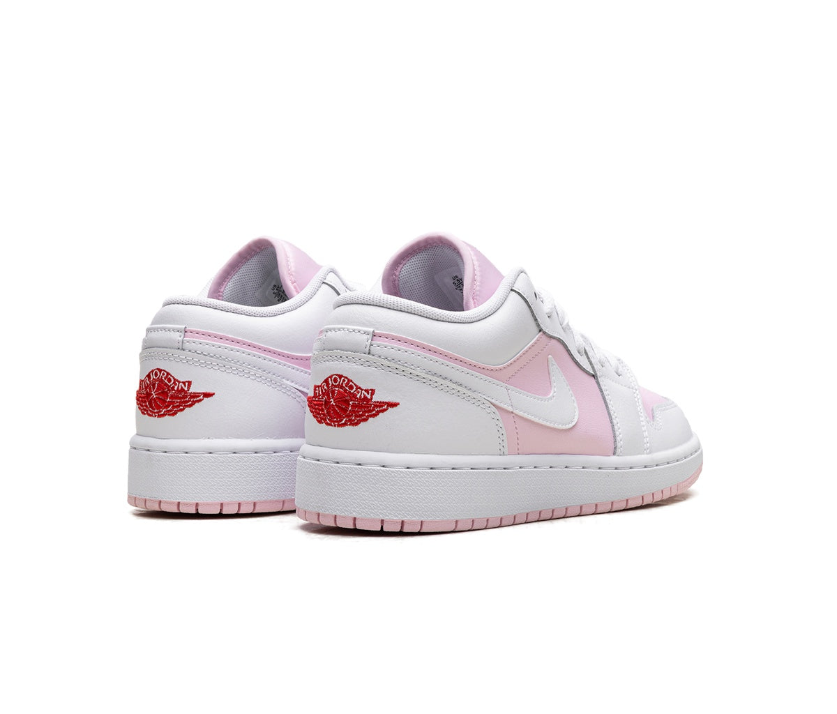 The Air Jordan 1 Low Pink Foam Fire Red White (GS) features soft pink tones. The iconic Air Jordan 1 Low silhouette has gained popularity for its timeless design and comfort, making it the perfect choice for everyday wear.