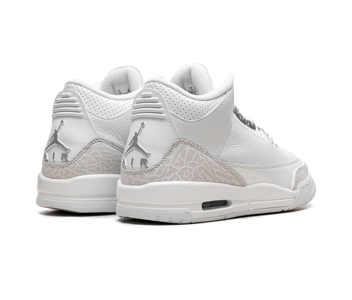 Tenisky Air Jordan 3 Retro Pure Money (GS) představují nadčasovou klasiku v čistě bílém provedení, které symbolizuje eleganci i jednoduchost. Model, původně představený v roce 2007, se vrací v ikonické siluetě s prémiovým koženým svrškem a charakteristickými detaily v podobě sloní textury na patě a špičce.