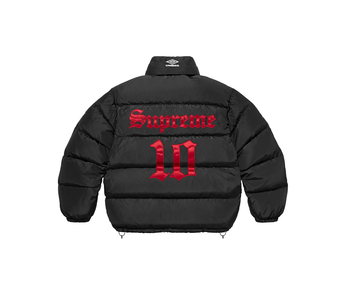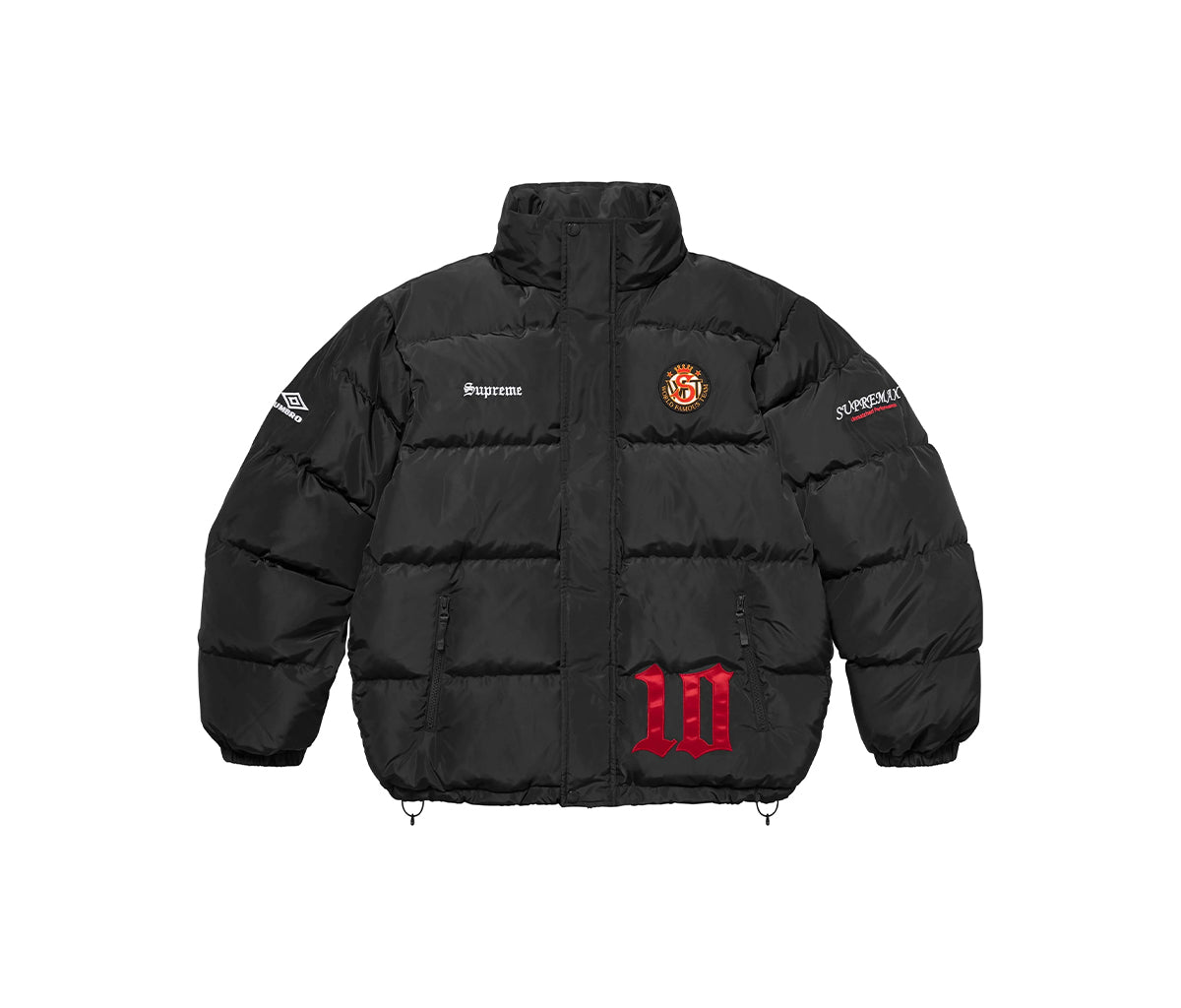 Bunda Supreme Umbro Down Puffer Jacket Black je technická bunda vzniklá ve spolupráci Supreme a Umbro, která přináší klasickou sportovní funkčnost do moderní streetwear estetiky. Černé provedení působí čistě a univerzálně, zatímco objemná down konstrukce s peřím zajišťuje teplo a pohodlí v chladnějším počasí. Inspirace fotbalovým a tréninkovým vybavením Umbro se odráží v detailech, propracovaných liniích a sportovním cutu, který Supreme reinterpretoval pro městské prostředí.