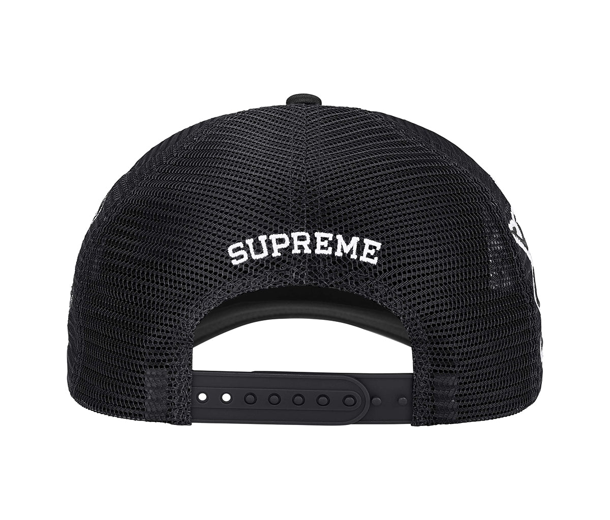 Čepice s nastavitelnou velikostí Supreme University Mesh Back 5-Panel Black v černé barvě s velkými černobílými výšivkami po obvodu. Od americké značky Supreme, která byla založena v roce 1994 a je naprostou legendou v rámci streetwearu.