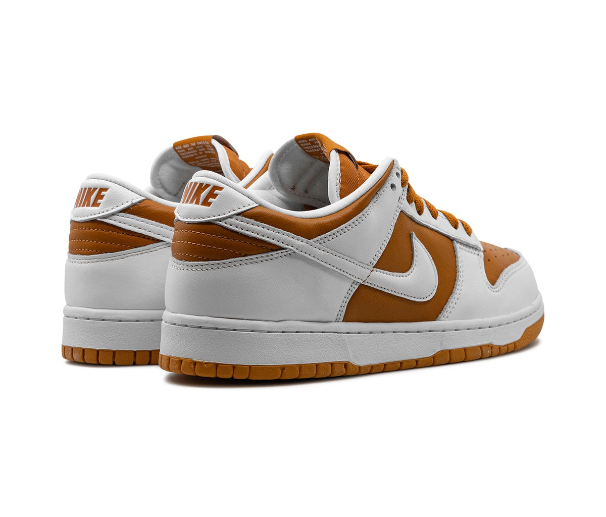 The Nike Dunk Low CO.JP Reverse Curry combines brown and cream on its upper in a reverse colorway of the classic Curry version. The iconic Dunk Low silhouette has become a staple of the streetwear scene, gaining popularity for its versatility and timeless design.