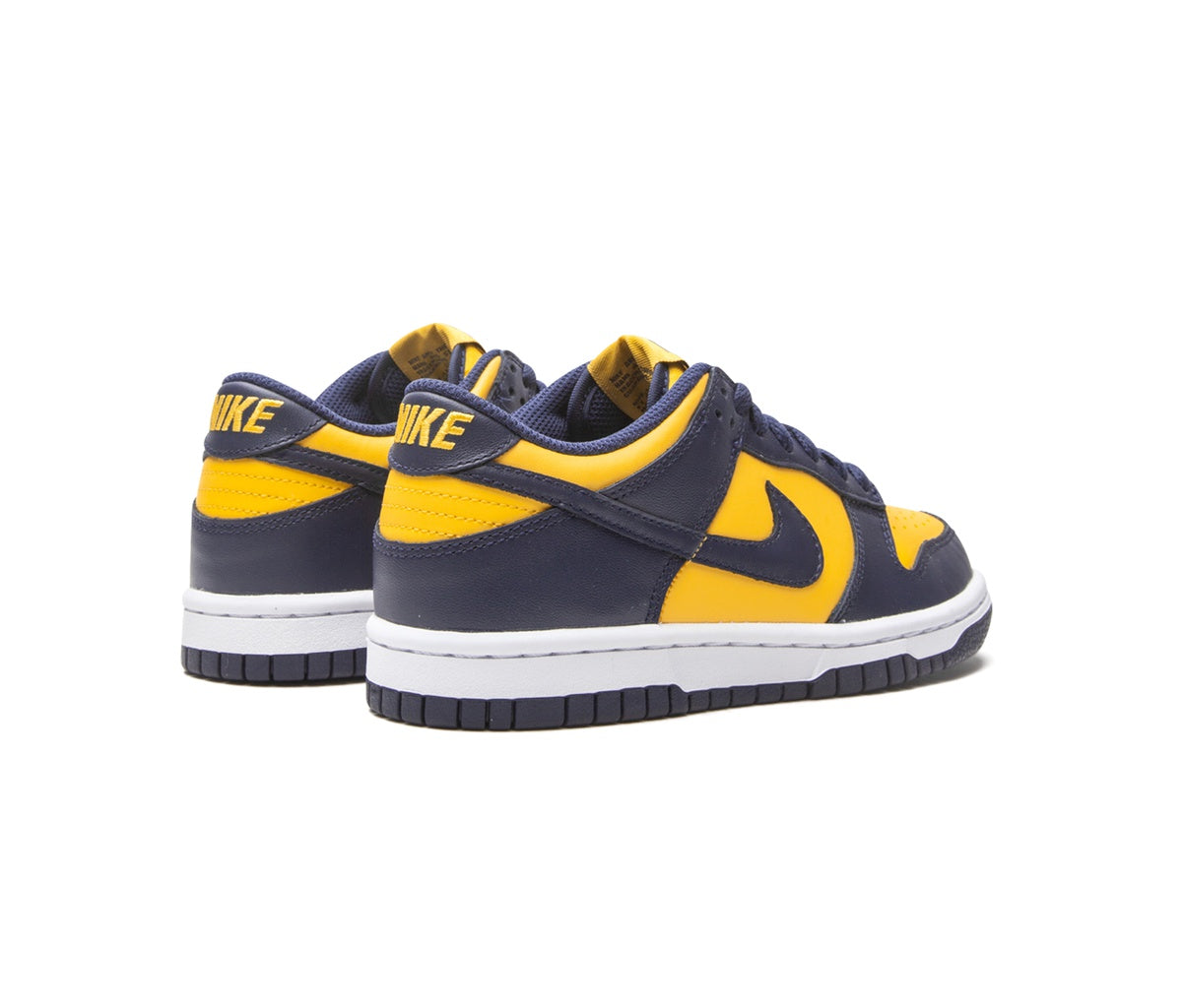The Nike Dunk Low Michigan (GS) features a navy blue and yellow colorway that references the University of Michigan colors. The iconic Dunk Low silhouette has become a streetwear staple and a favorite choice for those looking for style and comfort in one.
