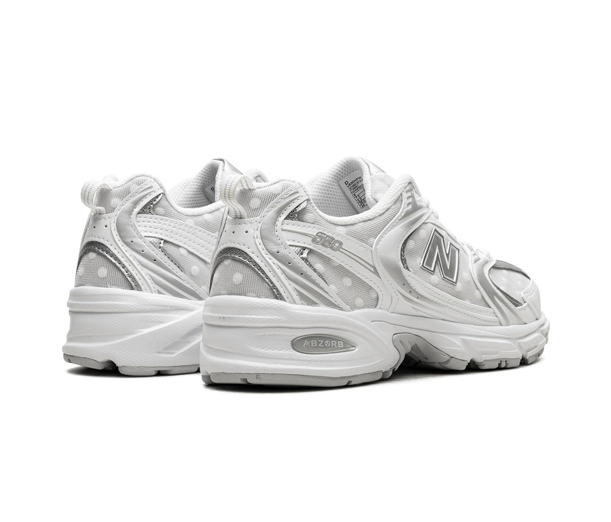 The New Balance 530 Silver Metallic Polka Dots combines crisp white with metallic silver details and playful polka dots. Inspired by running tradition, the 530 has become a style icon that has won the hearts of lovers of comfort and retro design around the world.