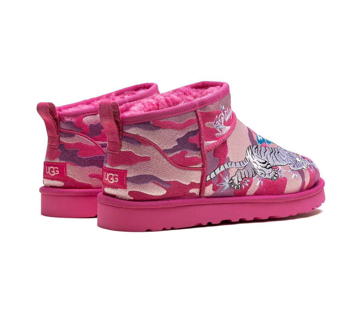 The UGG Classic Ultra Mini Boot Palace Pink Camo is the result of a unique collaboration between UGG and London streetwear brand Palace , which combines iconic comfort with a distinctive design.