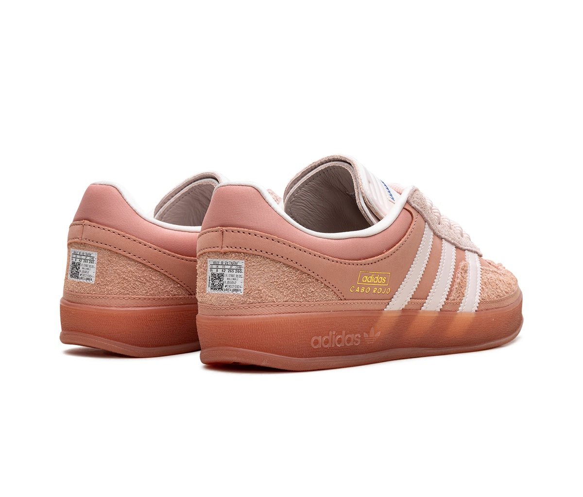 Tenisky adidas Gazelle Indoor Bad Bunny Cabo Rojo na svém svršku kombinují syté odstíny červené, krémové a hnědé. Ikonická silueta Gazelle Indoor dostává díky Bad Bunnymu svěží a originální vzhled, který osloví všechny milovníky streetwearu a jedinečného designu. Ve spolupráci s legendou latinoamerického popu a rapu jménem Bad Bunny.