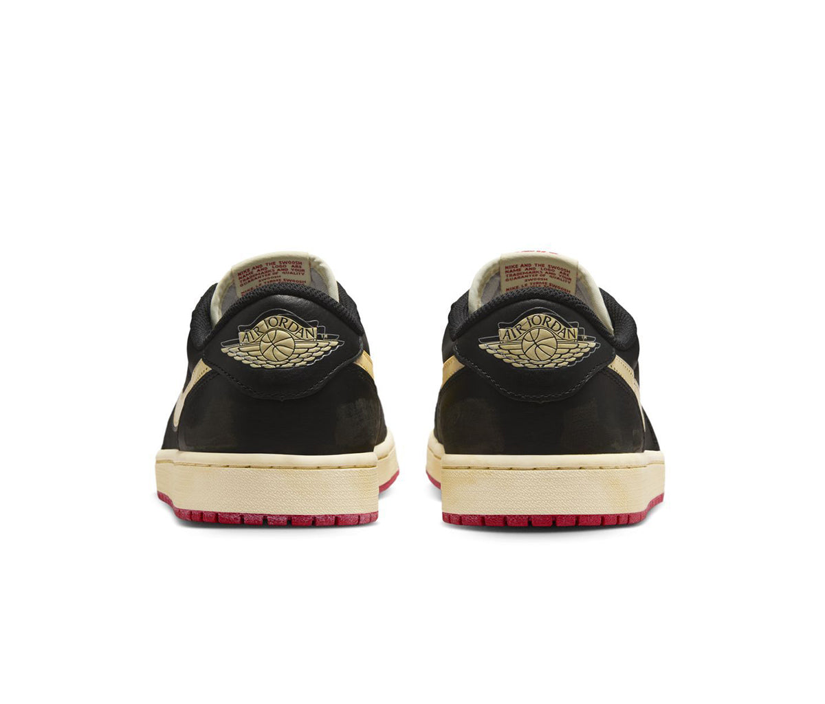 Tenisky Air Jordan 1 Low Nigel Sylvester Better With Time vypadají jako že už měly za sebou pořádnou dávku jízdy - a právě to je jejich kouzlo. Svršek je z černé kvalitní kůže, doplněný o ručně vytvořené šmouhy a oděrky připomínající opravdové opotřebení z BMX. Vytvořeny ve spolupráci s BMX riderem jménem Nigel Sylvester.