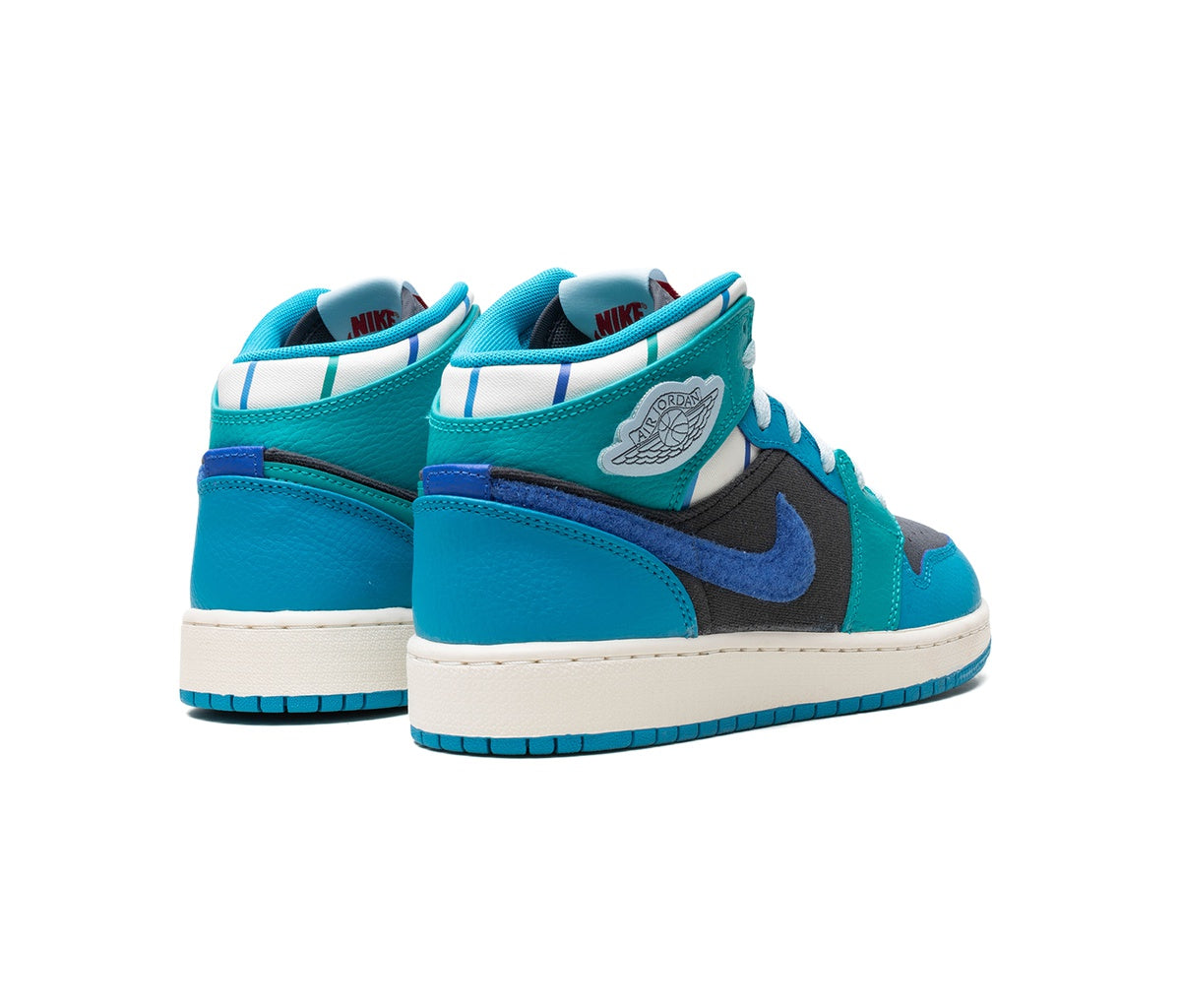 These Air Jordan 1 Mid Inspired by the Greatest Aquatone (GS) ankle sneakers pay homage to the best. The upper combines dynamic blue-toned colors with an iconic design that instantly grabs attention.