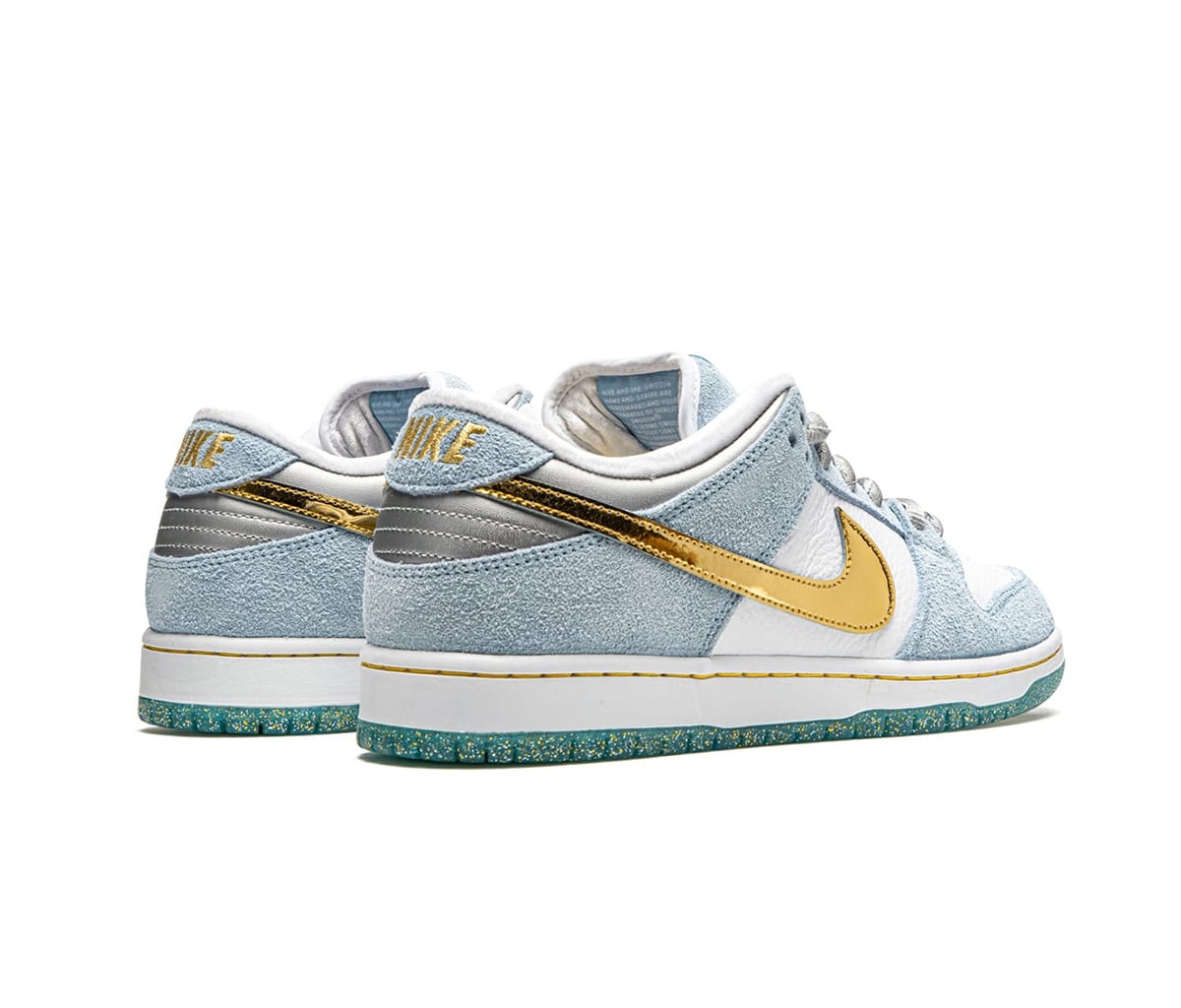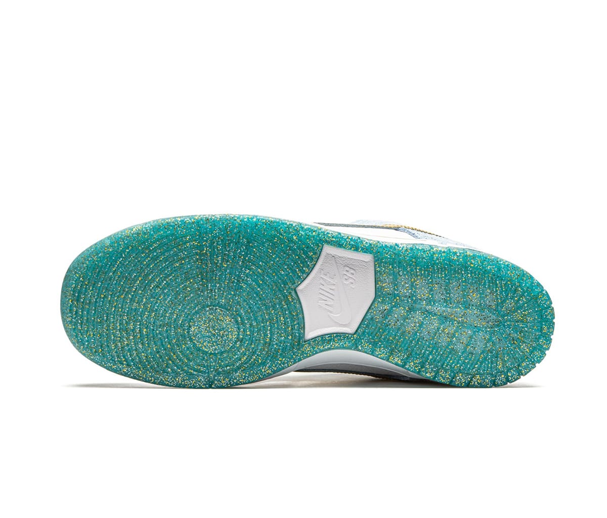 Model Nike SB Dunk Low Sean Cliver vznikl ve spolupráci s legendárním ilustrátorem a zakladatelem StrangeLove Skateboards, Seanem Cliverem. Tenisky v zimní kombinaci světle modrého semiše, bílého sametu a zlatých detailů připomínají mrazivou pohádku – ovšem s typickým skate twistem. Na vložkách najdete Cliverovy ilustrace a celý design působí jako luxusní sběratelský kousek.