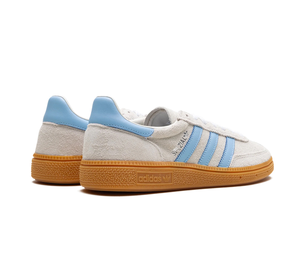 Nízké Tenisky adidas Handball Spezial W „Alumina Clear Sky“ vycházejí z původního modelu navrženého pro házenkáře v 70. letech, který se postupně stal ikonou lifestyleové kolekce adidas. Svršek z jemného semiše v odstínu alumina doplňují světle modré detaily Clear Sky a kontrastní tři pruhy, což botám dodává čistý, retro sportovní vzhled.