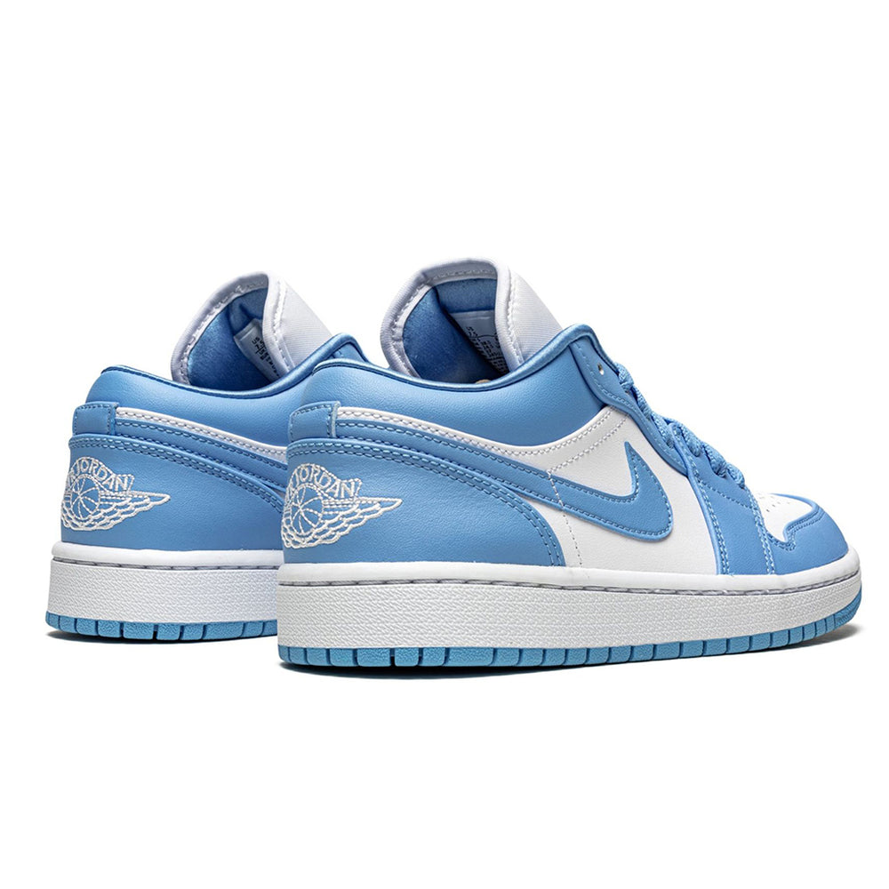 Nízké tenisky Air Jordan 1 Low UNC (W) na svém svršku kombinují modrou a bílou barvu. Sneakers Air Jordan 1 Low byly původně představeny v roce 1985 jako nízka variace ikonického vysokého modelu Air Jordan 1 High.