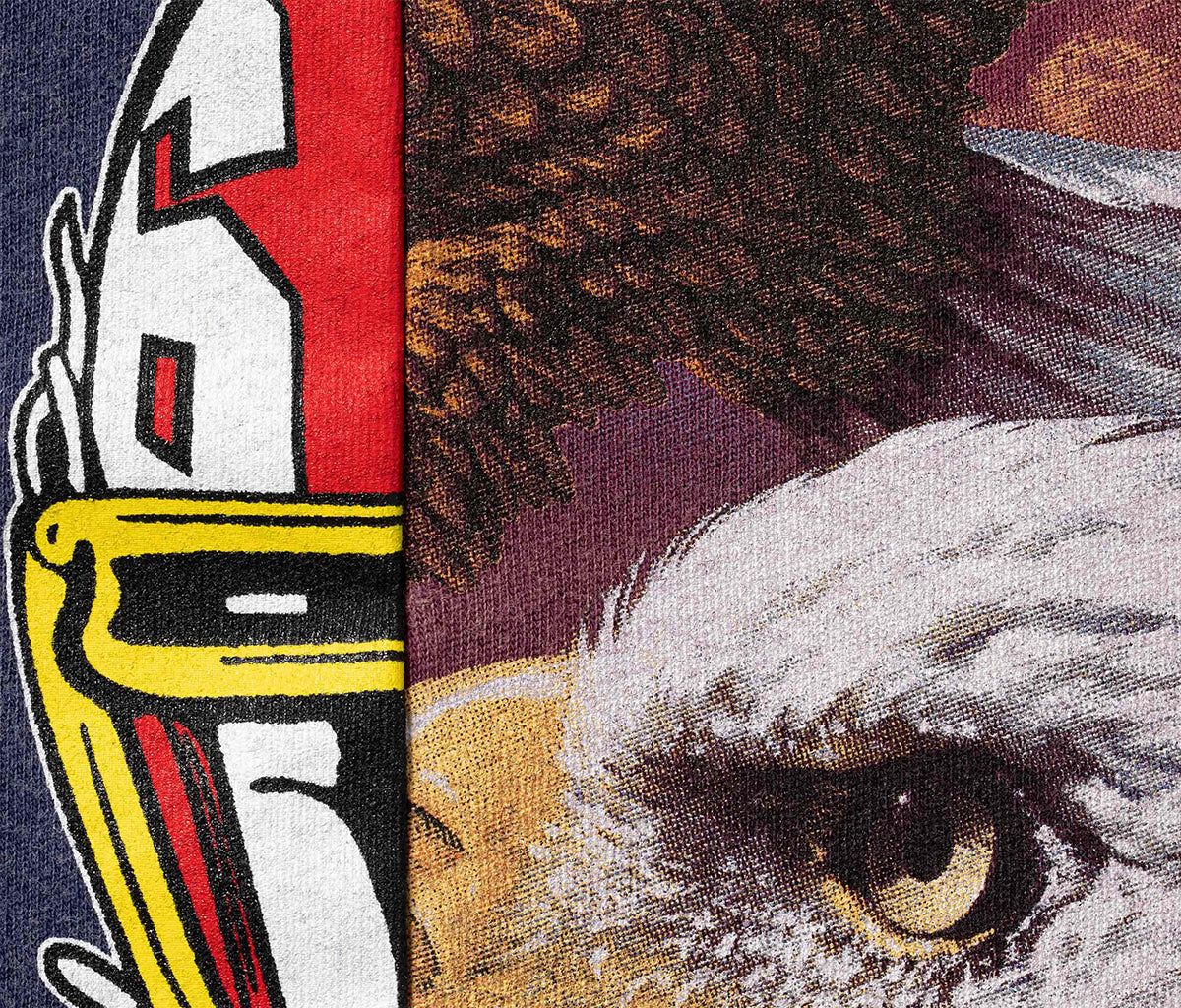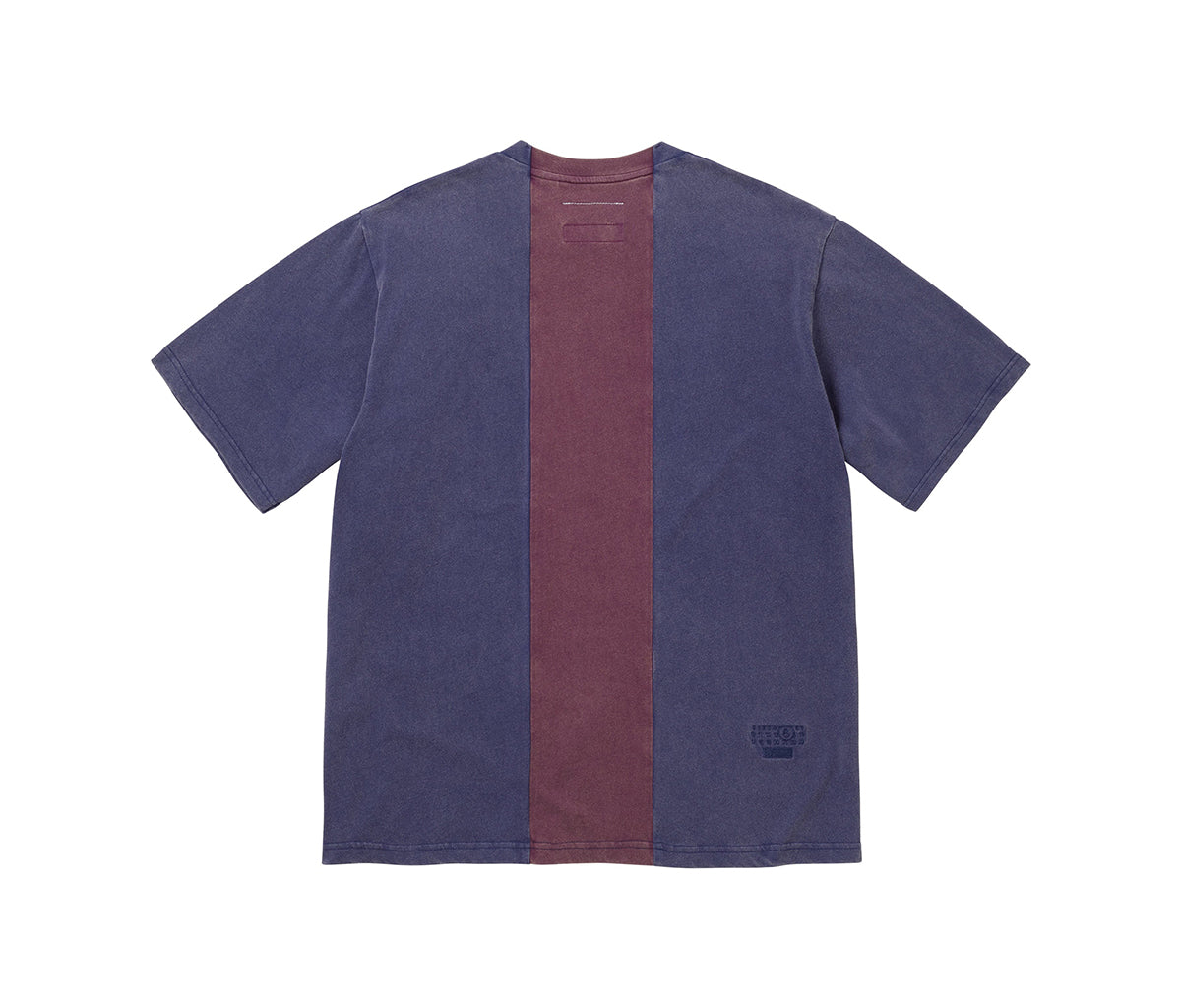 Modro-fialové tričko Supreme MM6 Maison Margiela Split S/S Top Navy s krátkým rukávem přináší experimentální design typický pro spolupráci s MM6 Maison Margiela. Na první pohled zaujme split konstrukcí, kdy je tričko vizuálně „sešité“ z více panelů, čímž vzniká cut efekt. Grafický print na hrudi doplňuje MM6 numeric signature na zádech a typická bílá stitch line u krku, která odkazuje na DNA značky MM6.